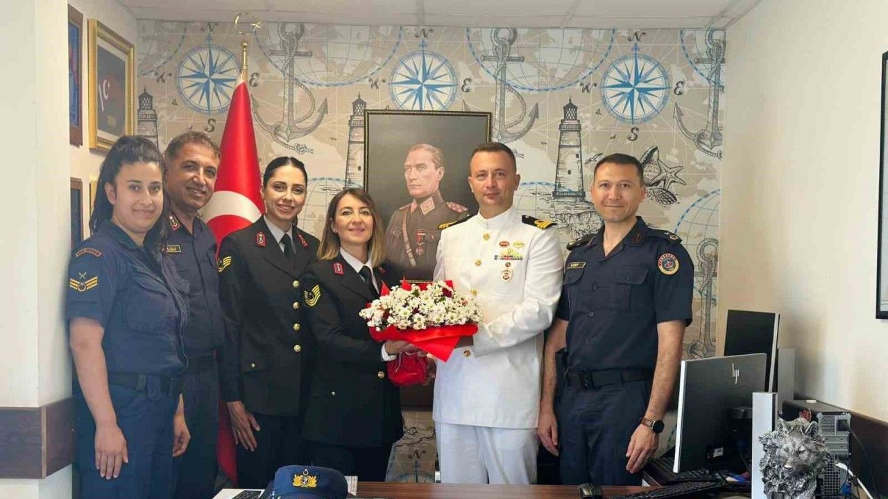 Aydın İl Jandarma Komutanlığı, kuruluş yıldönümü kapsamında Kuşadası Sahil Güvenlik Karakol Komutanlığı’nı ziyaret ederek çiçek takdim etti.