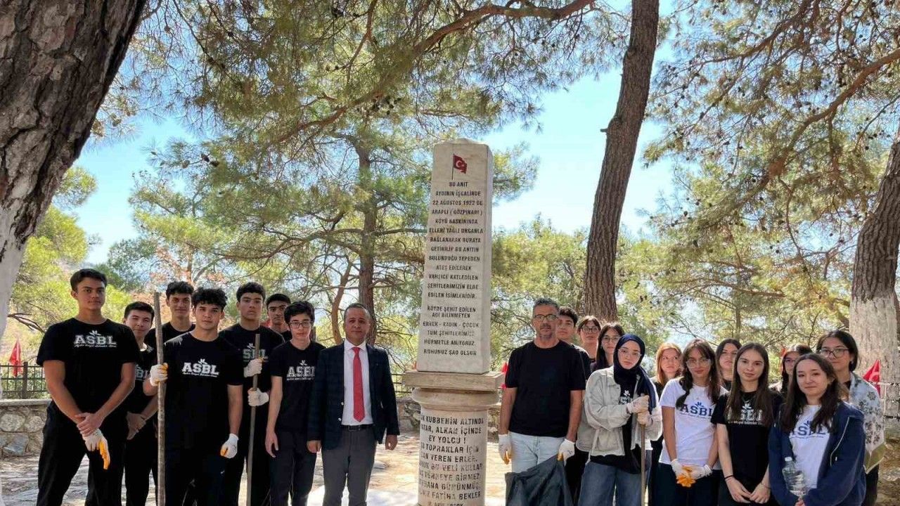 Gözpınar Şehitliği’ni ziyaret eden Aydın Sosyal Bilimler Lisesi öğrencileri, hem dua etti, hem de şehitlikte çevre temizliği yaparak örnek oldu.