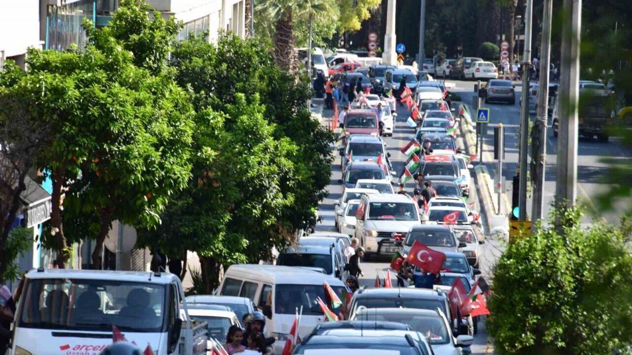Aydın Sivil Dayanışma Platformu, Aydın’ın 17 ilçesinden yüzlerce araç ve binlerce vatandaşın katılımıyla Efeler ilçesinde konvoy düzenlendi. Konvoyun ardından gerçekleştirilen mitingde, Filistin halkına destek mesajı verildi.