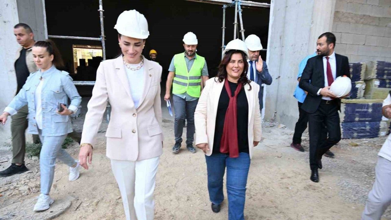 Aydın Büyükşehir Belediye Başkanı Özlem Çerçioğlu, AK Parti Aydın Milletvekili Seda Sarıbaş ile birlikte Efeler ilçesi Mimar Sinan Mahallesi’nde yapımı hızla devam eden kapalı spor salonu inşaatında incelemelerde bulundu.