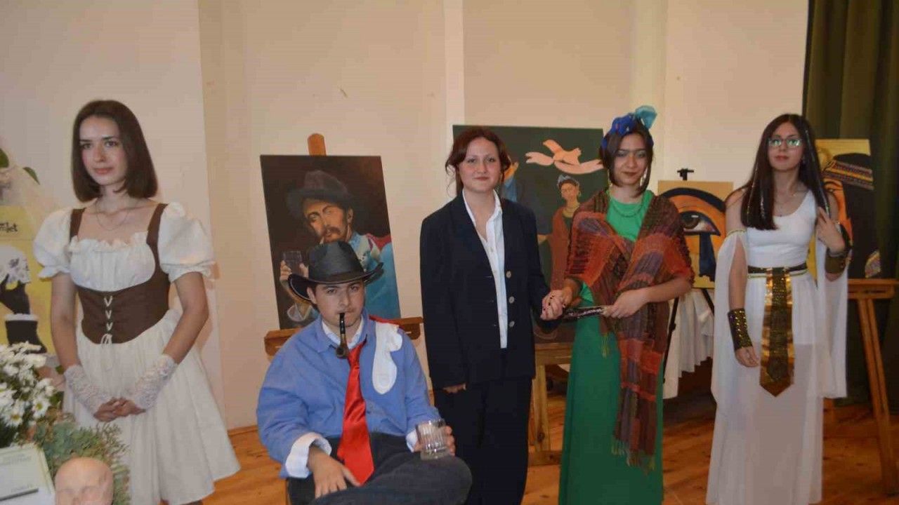 Balıkesir’in Ayvalık ilçesinde, Ayvalık Anadolu Lisesi (AYAL) öğrencileri hazırladıkları resim sergisini görsel şölene dönüştürdü. Tuval üzerinde çizdikleri Atatürk, Sabiha Gökçen, Ronaldo, Messi, Charlie Chaplin, Mihrimah Sultan, Kaplumbağa Terbiyecisi gibi tarihi ve güncel karakterlere ait resimleri, üzerlerine giydikleri kostümlerle beğeniye sunan öğrenciler, sergiyi ziyaret edenlerden tam not aldı.