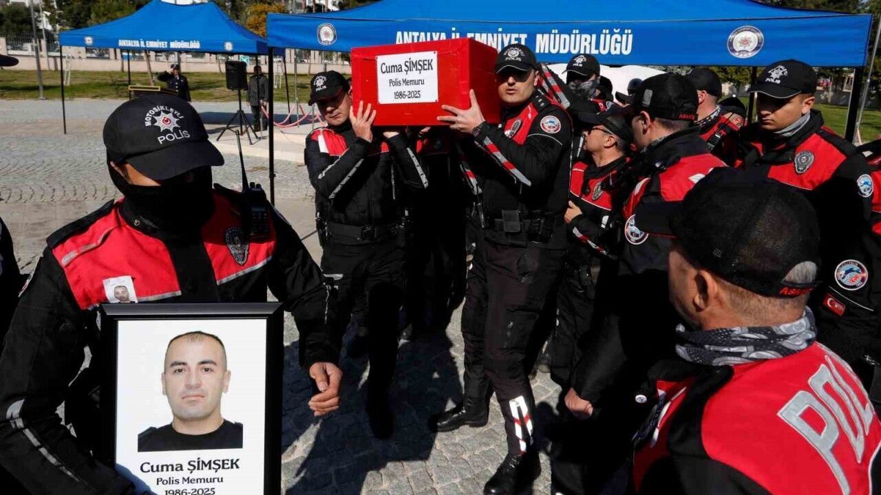 Antalya’da dün geçirdiği trafik kazasında olay yerinde hayatını kaybeden polis memuru Cuma Şimşek, Antalya Emniyet Müdürlüğü’nde düzenlenen törenle birlikte görev yaptığı meslektaşlarının omuzlarında son yolculuğuna uğurlandı.