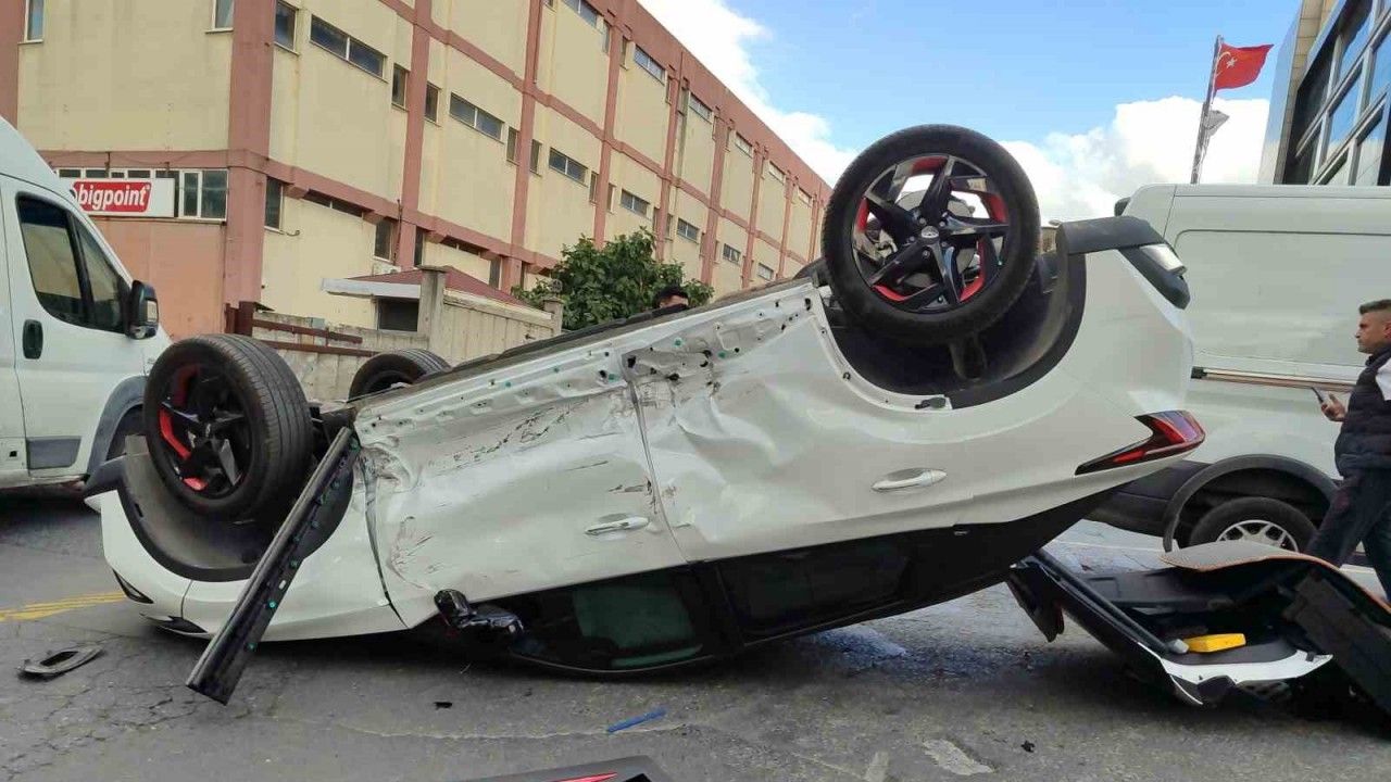 İstanbul Bahçelievler’de hızını alamayan minibüsün çarptığı otomobil takla atıp ters döndü. 2 kişinin hafif şekilde yaralandığı kazada 1 kişi ise yara almadan kurtuldu.