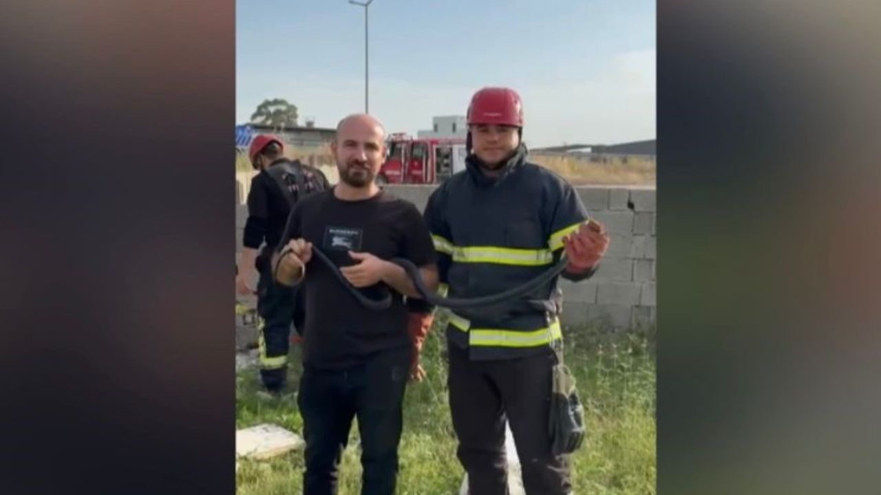 Osmaniye’de bahçeye giren bir buçuk metrelik kara yılanı yakalayan itfaiyeci yılana su içirirken, bazı vatandaşların yılanla hatıra fotoğrafı çektirdiği anlar da kameralara yansıdı.