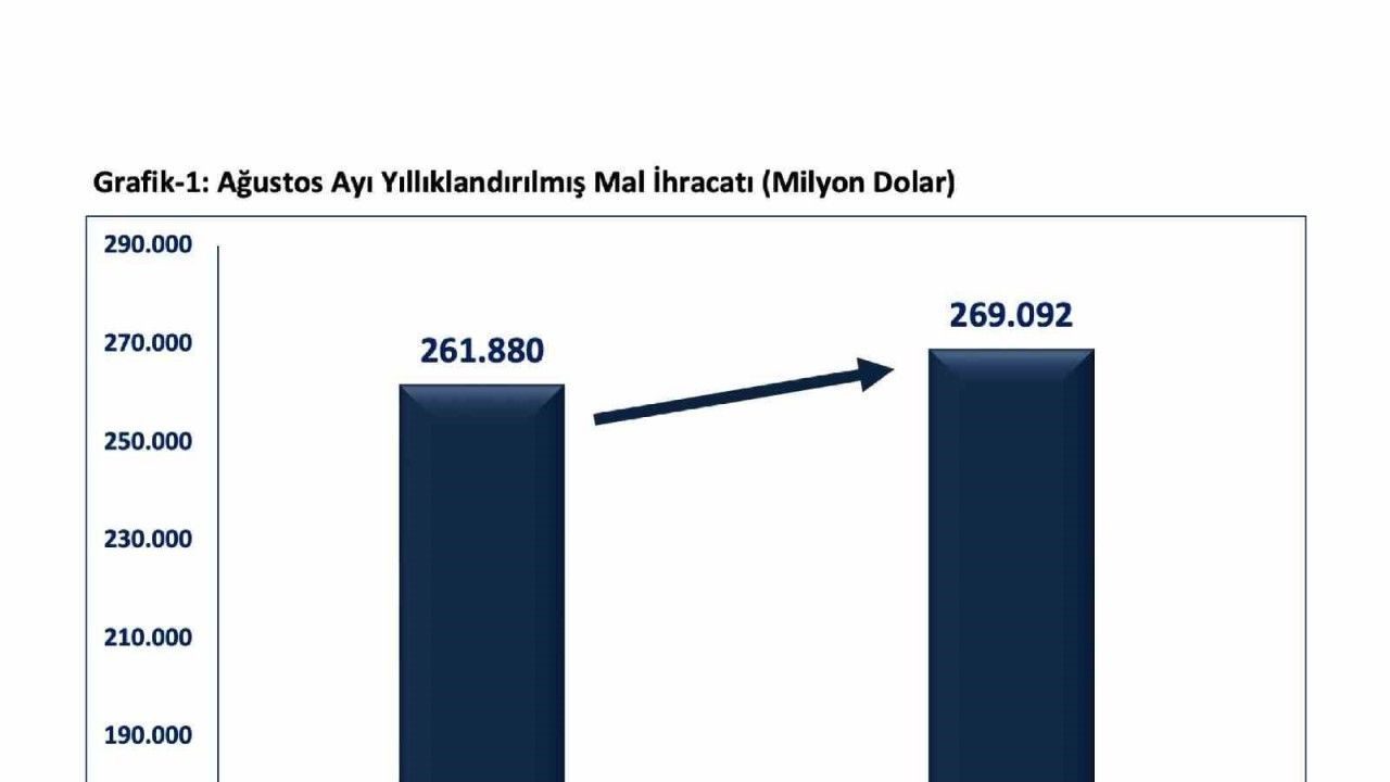 "İhracatımız yüzde 1,2 azalarak 21 milyar 729 milyon dolar olmuştur. 2025 yılının Ocak-Ağustos döneminde ihracatımız geçen yılın aynı dönemine göre yüzde 4,3 artışla 178,0 milyar dolar olmuştur. Ağustos ayı itibarıyla yıllıklandırılmış ihracatımız bir önceki yılın aynı ayına göre 7,2 milyar dolar artarak 269,1 milyar dolara ulaşmıştır. Ağustos ayında ithalat bir önceki yılın aynı ayına göre yüzde 3,9 azalarak 25 milyar 940 milyon dolar olmuştur. Ocak-Ağustos döneminde ithalatımız geçen yılın aynı dönemine göre yüzde 5,6 artışla 238,2 milyar dolar olmuştur. Yıllıklandırılmış ithalatımız bir önceki yılın aynı ayına göre 16,2 milyar dolar artarak 356,7 milyar dolar olarak gerçekleşmiştir. Dış ticaret açığımız 2025 Ağustos ayında yüzde 15,8 oranında azalarak 4,2 milyar dolar olarak gerçekleşmiştir."