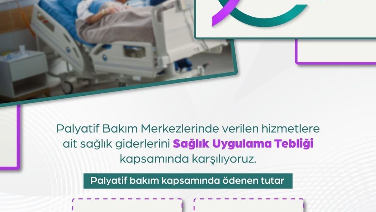 "Palyatif bakım merkezlerinde sunulan kapsamlı sağlık hizmetlerine ait giderleri Sağlık Uygulama Tebliği (SUT) kapsamında karşılıyoruz. Sosyal Güvenlik Kurumumuz aracılığıyla palyatif bakım kapsamında; 2024 yılında 76 bin 344 hastamız için 6,8 milyar lira, bu yılın ilk yarısında 44 bin 218 hastamız için 4,8 milyar lira bedeli karşıladık."