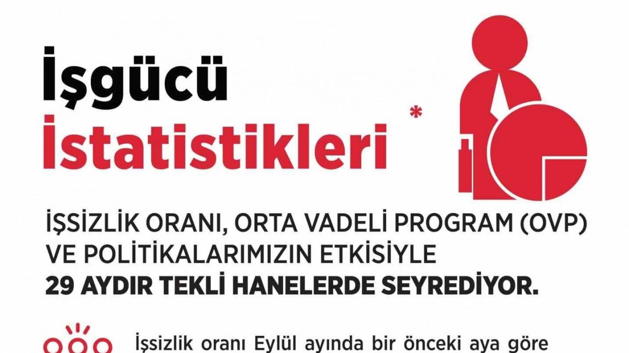 Çalışma ve Sosyal Güvenlik Bakanı Vedat Işıkhan, Eylül ayında işsizlik oranına ilişkin açıklama yaptı. Bakan Işıkhan sosyal medya hesabından yaptığı paylaşımda, Orta Vadeli Programımız (OVP) ve çalışma hayatını geliştirmeye yönelik politikalarımızın etkisiyle işsizlik oranı, 29 aydır tekli hanelerde seyretmeye devam ediyor. İşsizlik oranı Eylül ayında bir önceki aya göre değişim göstermeyerek yüzde 8,6 seviyesinde gerçekleşti" ifadelerini kullandı.