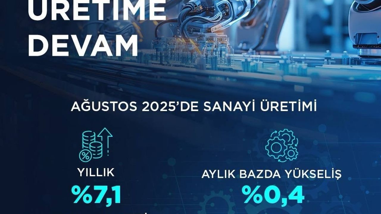 Sanayi ve Teknoloji Bakanı Mehmet Fatih Kacır, "Ağustos’ta sanayi üretim endeksi yıllık yüzde 7,1 artış kaydetti. İmalat sanayi sektörü endeksi, önceki yılın aynı ayına göre yüzde 7,7 yükseldi" dedi.