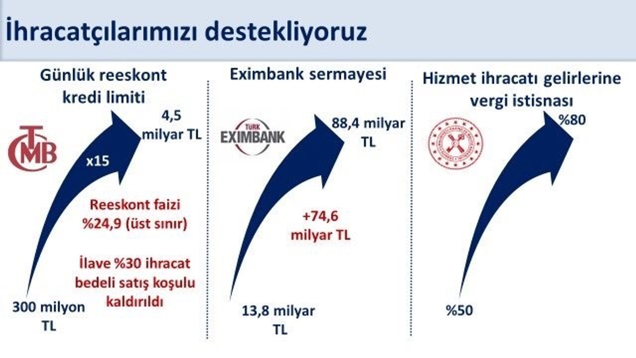 Bu gelişmenin ardından Hazine ve Maliye Bakanı Mehmet Şimşek, sosyal medya hesabı üzerinden ihracatçıların finansmana erişimini kolaylaştıran bu adımları değerlendirdi. Şimşek, "İhracatçılarımızın finansmana erişimini kolaylaştıracak adımları atmaya devam ediyoruz. Piyasa faizinin yaklaşık yarısı maliyetle kullandırdığımız reeskont kredi limitlerini artırıyoruz. Reeskont kredileri günlük limitini program döneminde 300 milyon liradan 4,5 milyar liraya 15 kat yükselttik. Yabancı para reeskont toplam limiti 1 milyar dolara çıkarıldı. Eximbank’ın sermayesi 5 kattan fazla artışla 88,4 milyar liraya ulaştı. Bu sene Eximbank’ın ihracatçılarımıza nakdi ve gayrinakdi toplam 53 milyar dolar destek sağlamasını bekliyoruz. Küresel değer zincirlerinde daha üst sıralara çıkmak için ihracatı ve katma değerli üretimi desteklemeyi kararlılıkla sürdüreceğiz" açıklamasında bulundu.
