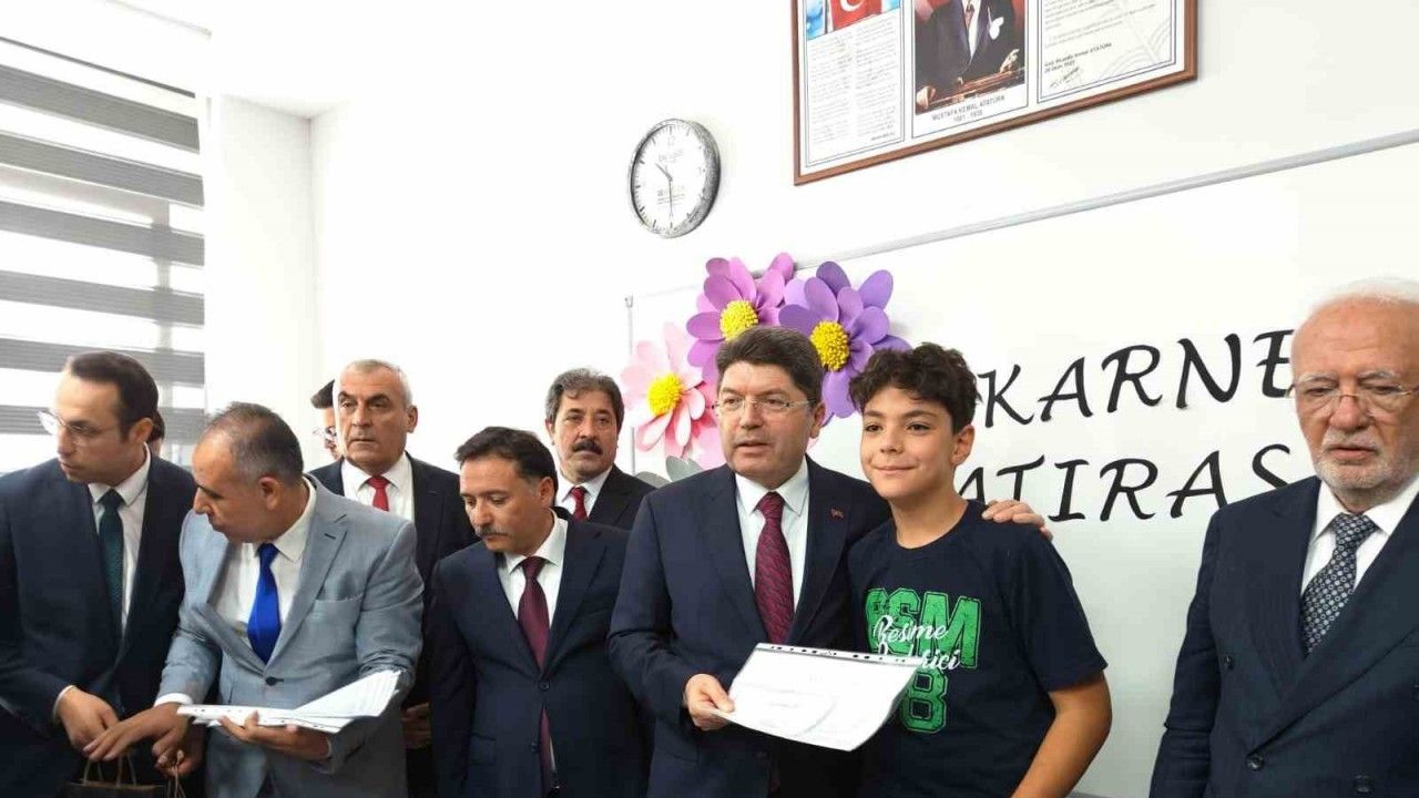 Konuşmaların ardından Adalet Bakanı Yılmaz Tunç, 7. sınıf öğrencileri ile sohbet ettikten sonra karnelerini verdi.