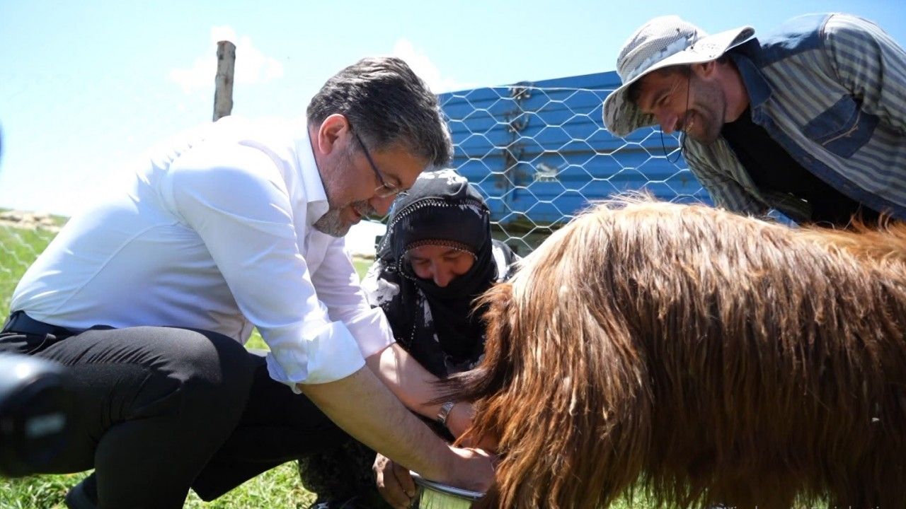Tarım ve Orman Bakanı İbrahim Yumaklı, Muş’un Mercimekkale köyünde süt sağan kadınları ziyaret ederek onlarla beraber keçi sağdı.