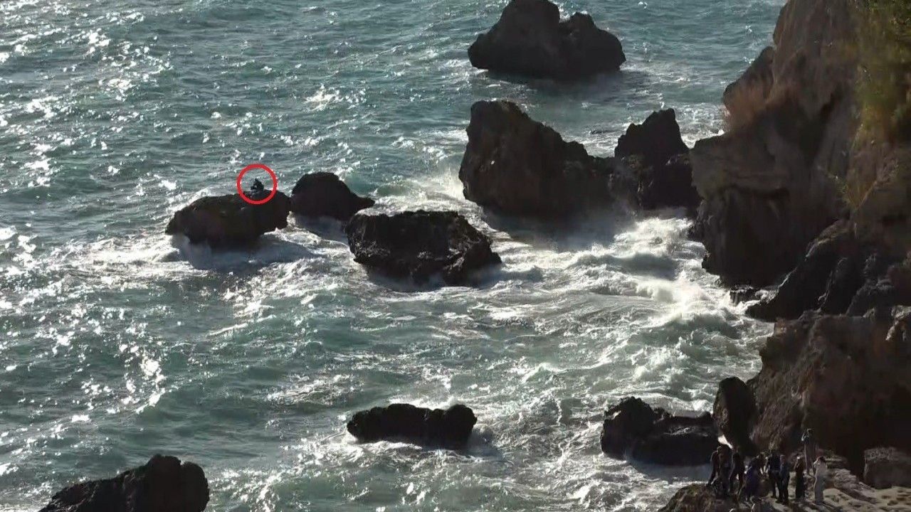 Muratpaşa ilçesinde bulunan Bambus Plajı’nda öğle saatlerinde dev dalgalar tehlike oluşturdu. Her gün aynı noktada balık tutmaya gelen 63 yaşındaki Yusuf Öner, saat 15.30 sıralarında falezlerin denizle buluştuğu alanda kara ile bağlantısı olmayan kayalık alana yüzerek geçti. Öner, kuvvetli rüzgarın etkisiyle büyüyen dalgalar nedeniyle kayalıklarda mahsur kaldı.