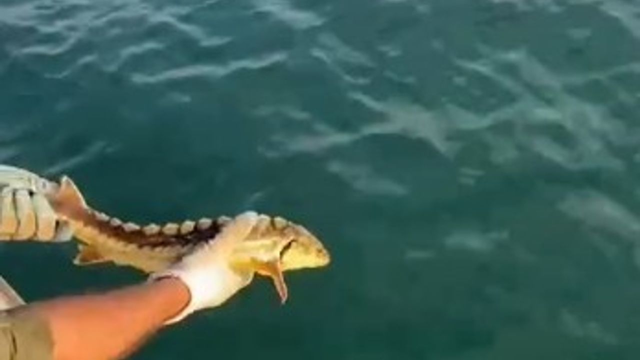 Karasu’ya bağlı Karasu Mahallesi Haralambo mevkisinde avlanan balıkçıların ağına nesli tehdit altındaki Mersin balığı takıldı. Durumu fark eden balıkçılar, balığı özenle ağdan kurtararak geri denize bıraktı. Bu duyarlı davranış, başka bir balıkçının cep telefonu kamerasına yansıdı.