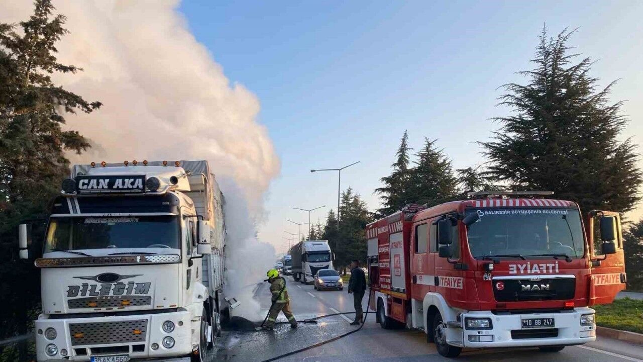 Olay, Balıkesir’in İzmir- Bursa yönü çevre yolu üzerinde meydana geldi. İzmir istikametinden seyir halinde olan 35 AKA plakalı otomotiv plastik yedek parçası yüklü kamyonun balatalarında başlayan yangına yüke sirayet etmek üzereyken itfaiye müdahale etti. Ekiplerin gayretiyle yangın söndürüldü. Söndürme çalışmaları esnasında yol kısa süreliğine trafiğe kapatıldı. Yangın söndürüldükten sonra yol temizliği yapılarak, trafiğe açıldı.