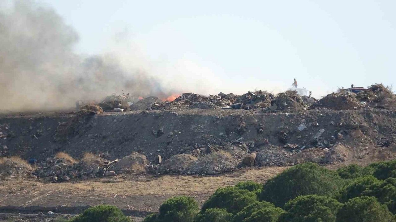 Balıkesir’in Ayvalık ilçesinde çöp depolama tesisinde yangın çıktı.