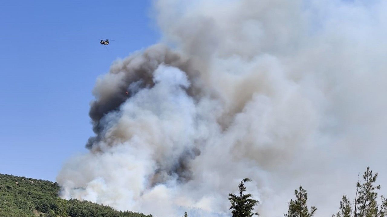 Balıkesir’de ormanlık alanda çıkan yangına ekipler havadan ve karadan müdahale ediyor.