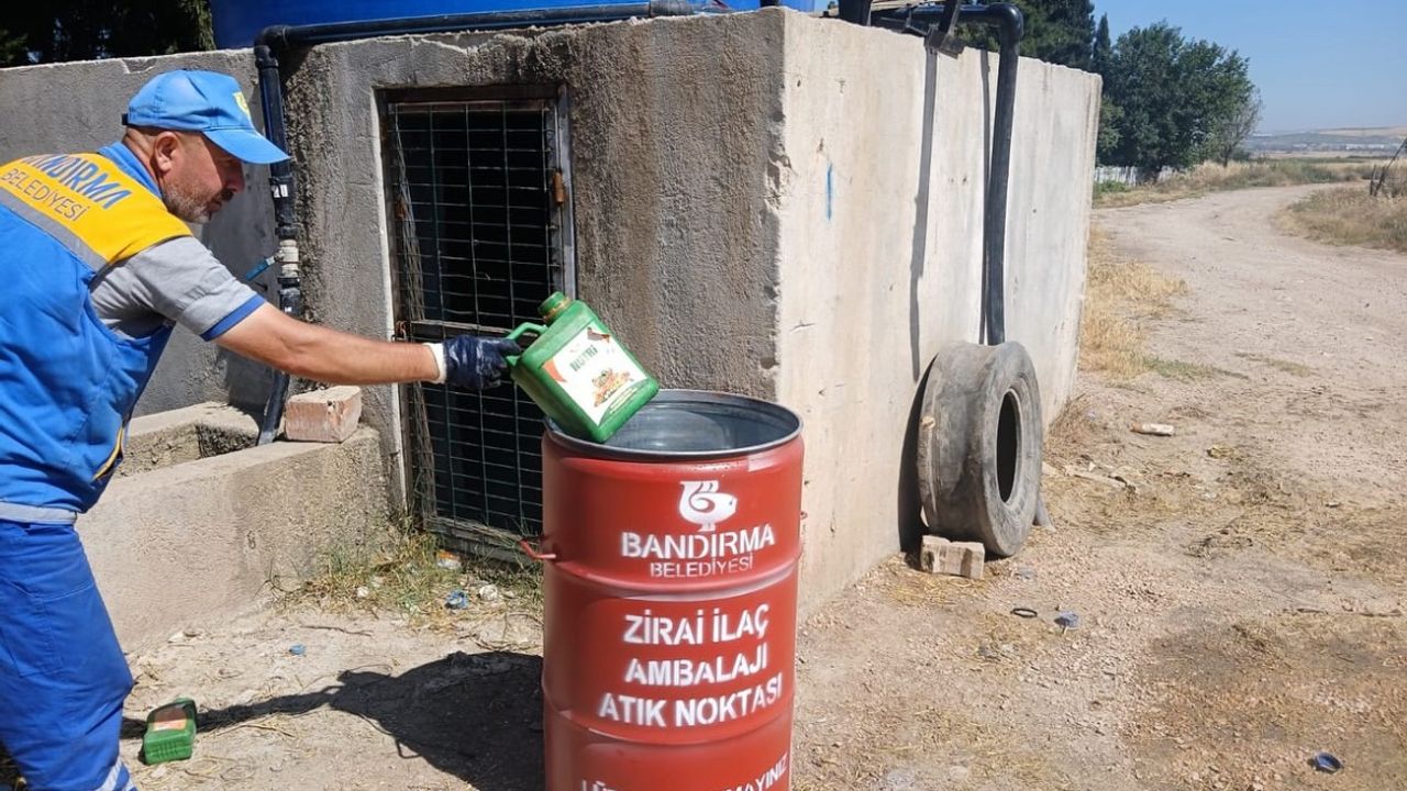 Zirai ilaçlama yapılan alanlara en yakın su depoları ve ortak kullanım noktalarına yerleştirilen varillerin, sadece zirai ilaç ambalaj atıkları için kullanılacağı bildirildi.