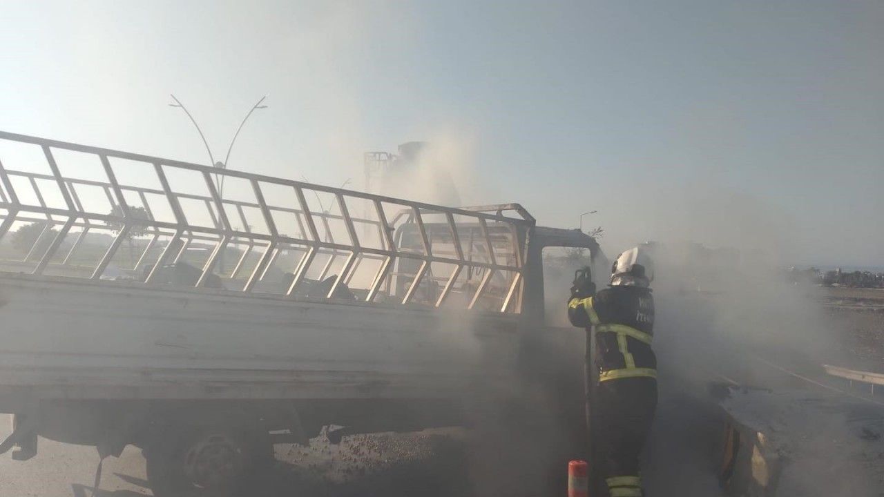 Kaza, Arsız ilçesi EXPO mevkiinde yaşandı. Seyir halindeyken bariyerlere çarpan pikap, alev alarak yanmaya başladı. İhbar üzerine bölgeye itfaiye ekipleri sevk edildi. Hatay Büyükşehir Belediyesi itfaiye ekiplerinin müdahalesiyle yangın kontrol altına alınarak söndürüldü. Yangında yaralanan olmazken, araç kullanılmaz hale geldi. Pikabın alev alev yandığı anlarsa kameraya yansıdı.