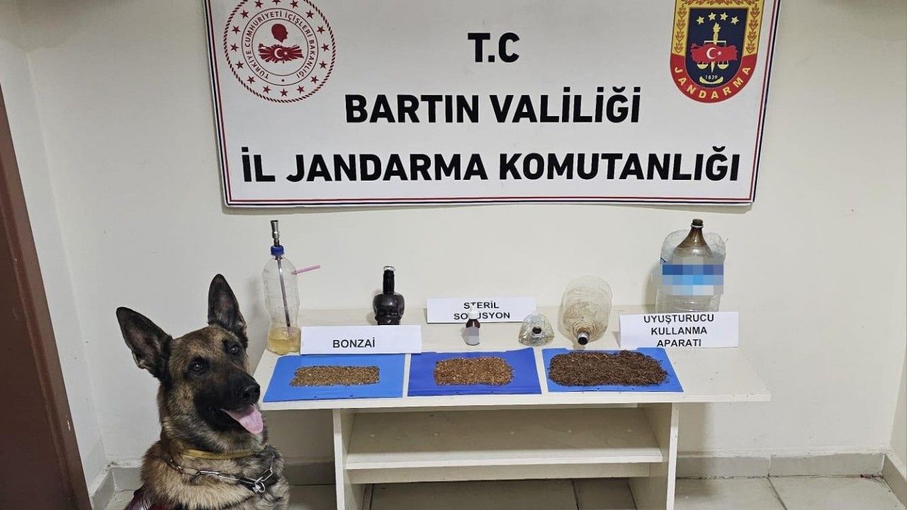 Edinilen bişgiye göre, İl Jandarma Komutanlığı ekipleri bir şahsın Bartın il merkezindeki evine yaptığı operasyonda, 57 gram bonzai, 5 adet uyuşturucu madde kullanma aparatı, 50 ml steril solüsyon ele geçirdi.