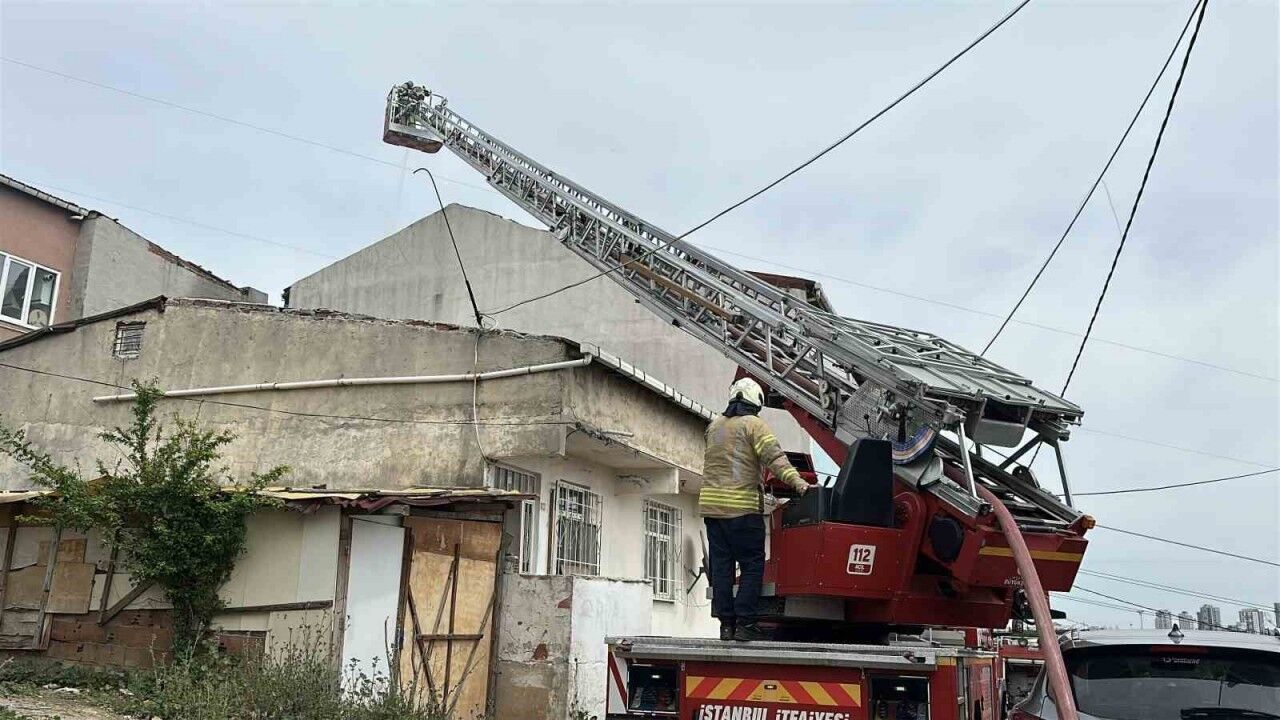 İstanbul Başakşehir’de tadilat yapılan bir çatıda çalışmalar esnasında yangın çıktı. Rüzgarın etkisiyle yangın kısa sürede çatıyı etkisi altına aldı. Söndürme çalışması dron ile görüntülendi.