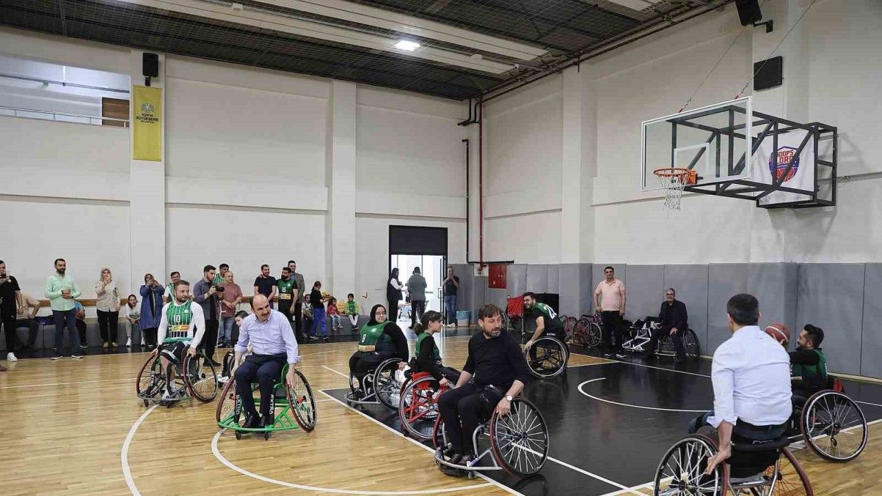 Konya Büyükşehir Belediyesi tarafından Konya Lisesi’ne kazandırılan spor salonunda gerçekleştirilen etkinlikte Konya Büyükşehir Belediye Başkanı Uğur İbrahim Altay, tekerlekli sandalyeye oturarak Konya Engelliler Spor Kulübü Tekerlekli Sandalye Basketbol Takımı sporcularıyla ile maç yaptı.