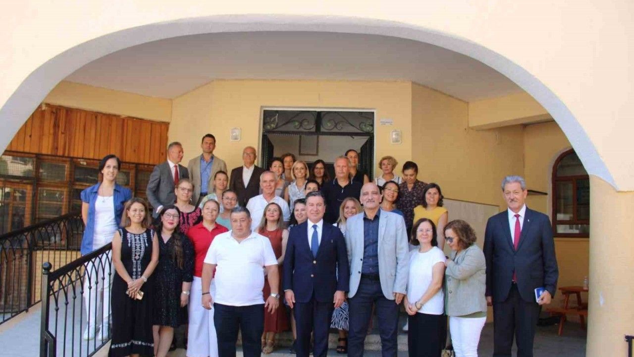 Muğla Büyükşehir Belediye Başkanı Ahmet Aras ve beraberindeki heyet yeni eğitim-öğretim yılının açılışı dolayısıyla Kocamustafendi İlkokulu’nu ziyaret etti. Öğrencilerden yoğun ilgi gören Aras, suluklar hediye ederek pet şişe kullanımının azaltılması gerektiğine dikkat çekti.