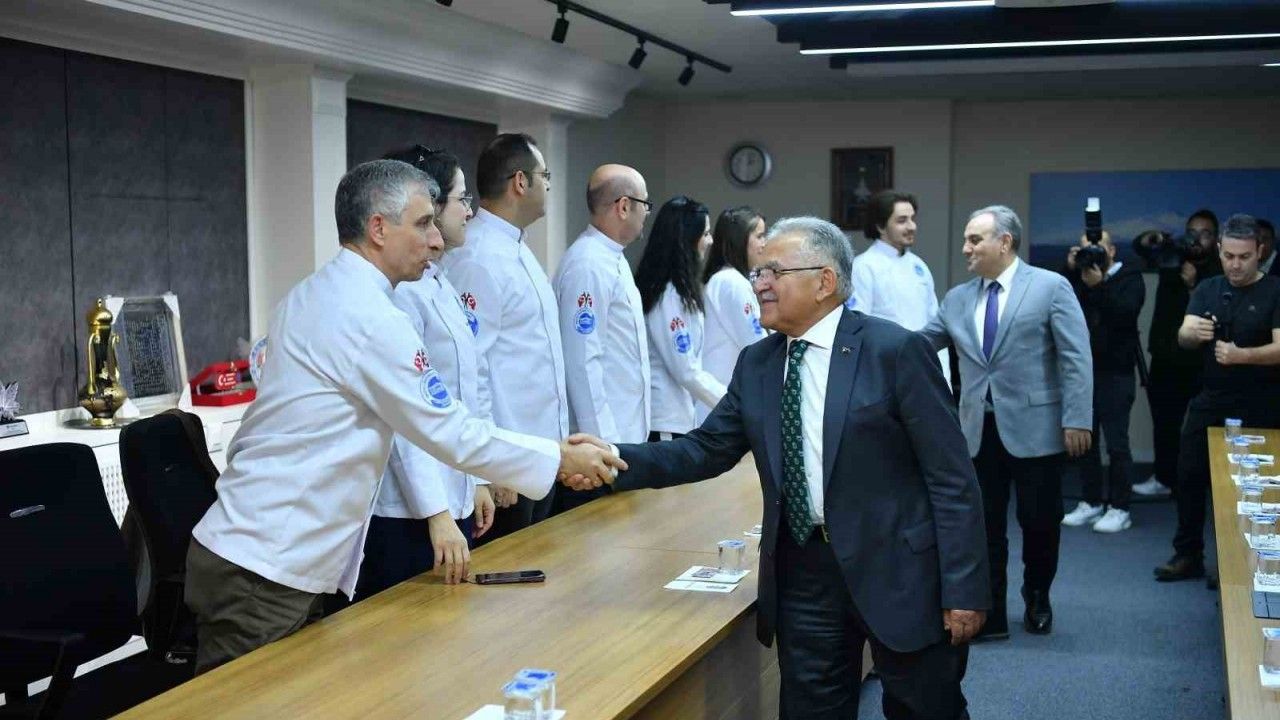 Öğrencilerle tek tek selamlaşan Başkan Büyükkılıç, sıcak ve samimi ortamda gerçekleşen ziyarette, gastronomi alanında Kayseri’nin ulusal bazda yenilikçi şehirler listesine girmesi yönünde gayretlerini sürdürdüklerini ifade etti. Kayseri’yi binlerce yılın getirdiği zenginliklerle değişik tatların adresi ve merkezi olarak yorumladıklarını vurgulayan Büyükkılıç, "Bunu da hak ettiğimize inanıyoruz. Kalıcı olmasını sağlama adına Mutfak Sanatları Merkezi’mizi de hayata geçirdik. Kamuoyunda takdir edilmeye başlandı, orada atölyelerimizle, nezih bir ortamda ikramlarıyla eğitim merkezi olacak şekilde gündemde yerini alıyor" diye konuştu.