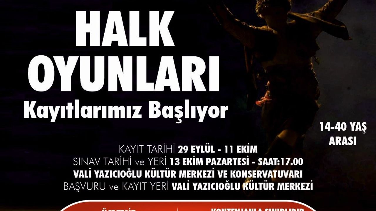 Kontenjanla sınırlı olan programa başvurular, 29 Eylül - 11 Ekim tarihleri arasında Vali Yazıcıoğlu Kültür Merkezi’nde yapılabilecek. Öğrenci kabulü yetenek sınavı ile gerçekleştirilecek. Eğitimlere katılmaya hak kazanan kursiyerler, hem alanında uzman eğitmenlerden ders alacak hem de yıl boyunca düzenlenecek gösterilerde sahne alma fırsatı bulacak.