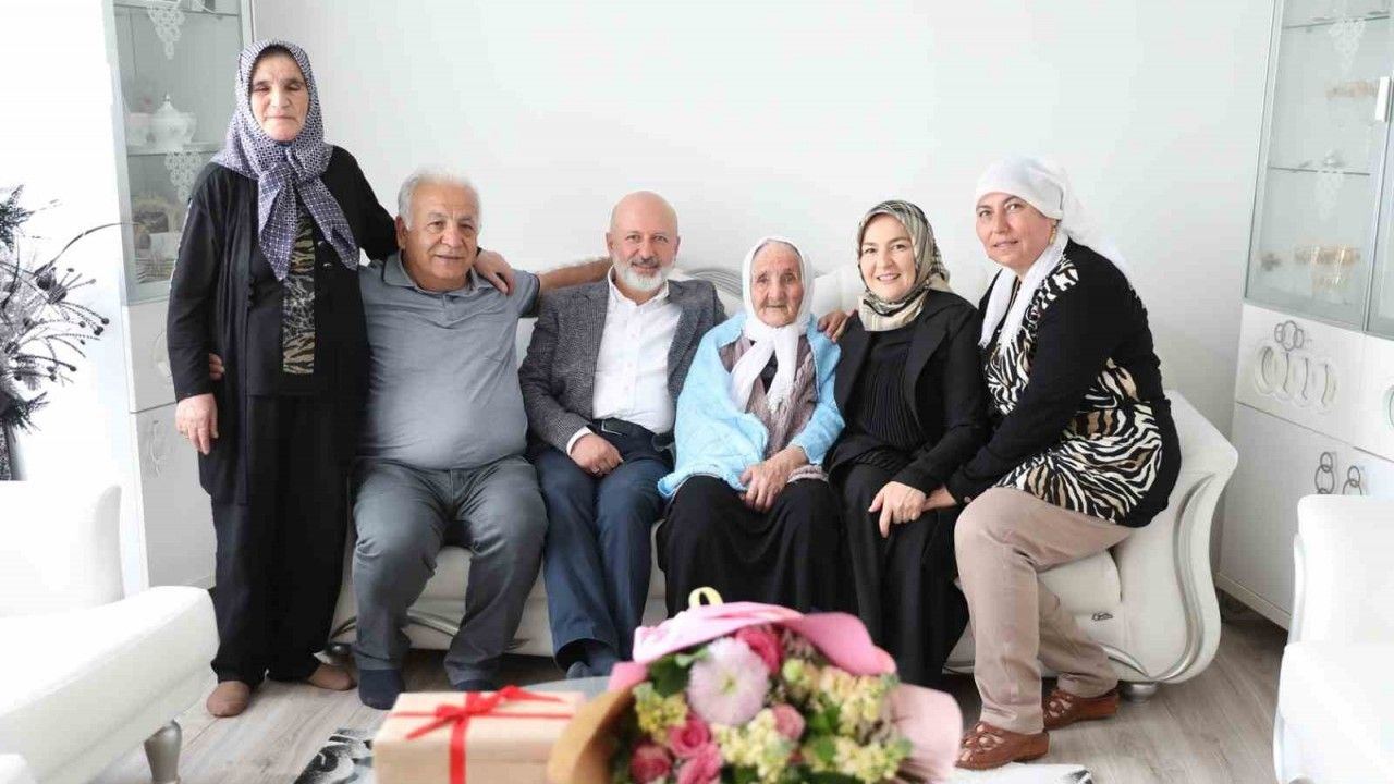Erkilet Osmangazi Mahallesi’nde ikamet eden Şemsi Kılıç’ın gelini Selma Kılıç, Başkan Çolakbayrakdar’ın sosyal medya hesabına, ’Merhaba Ahmet Bey, Anneler Günü’nde 109 yaşındaki kayınvalidemi ziyaret ederek mutlu edebilir miyiz?’ diye yorum yazdı. Başkan Çolakbayrakdar da eşiyle birlikte büyük bir sürpriz yaparak, 109 yaşındaki Şemsi Kılıç’ın evine misafir oldu. Oğlu ve geliniyle birlikte yaşayan, 30’dan fazla torunu olan ve torununun torununu gören Şemsi Teyze, Başkan Çolakbayrakdar’ı karşısında görünce büyük bir sevinç ve mutluluk yaşadı. Mutluluktan dualar eden ve "Ayaklarına kurban olayım" diyen Şemsi Teyze’ye karşılık olarak Başkan Çolakbayrakdar, "Allah sıhhatli, sağlıklı, hayırlı ömürler versin." dedi. Sarız’ın yaylalarında ömrünü geçirdiğini, sağlığını ise doğal beslenmeye borçlu olduğunu dile getiren Şemsi Teyze, çok çalıştığını da ifade etti. Şemsi Teyze’nin duasını alan Başkan Çolakbayrakdar, şunları kaydetti;