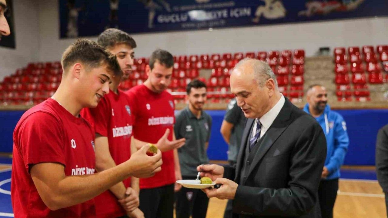 Düzce Belediye Başkanı Dr. Faruk Özlü, Düzce Belediyesi Spor Akademisi voleybol takımlarının antrenmanına katılarak, baklava ikram etti. Erkek voleybolcuları ilk galibiyetleri için tebrik eden Özlü, hafta sonu sahaya çıkacak kadın voleybolculara da başarılar diledi.