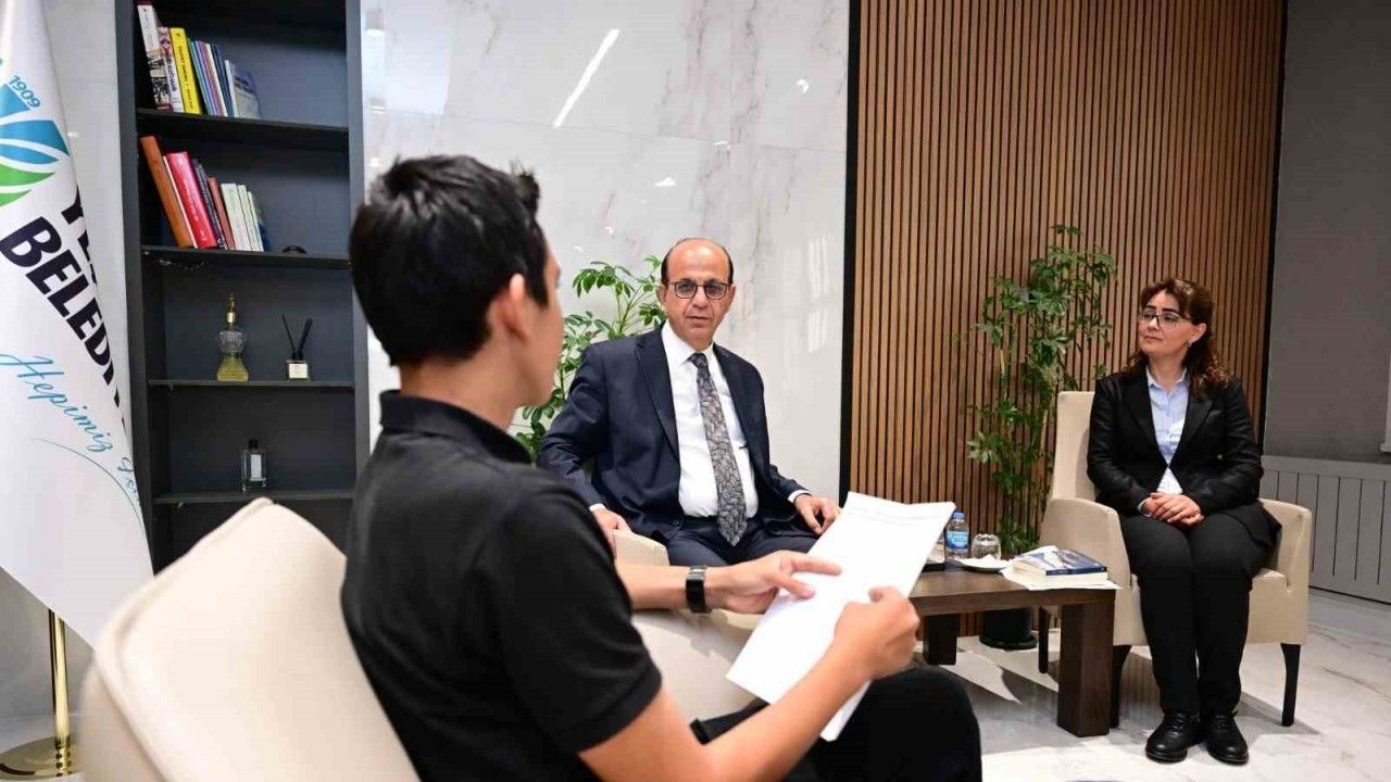 Yeşilyurt Belediye Başkanı Prof. Dr. İlhan Geçit, Kernek Anadolu Lisesi öğretmen ve öğrencilerini makamında ağırlayarak öğrencilerin hazırladığı soruları yanıtladı. Öğrencilerin düşüncelerini, beklentilerini ve önerilerini dinleyen Başkan Geçit, hayatının merkezinde çalışmak olduğunu söyledi.
