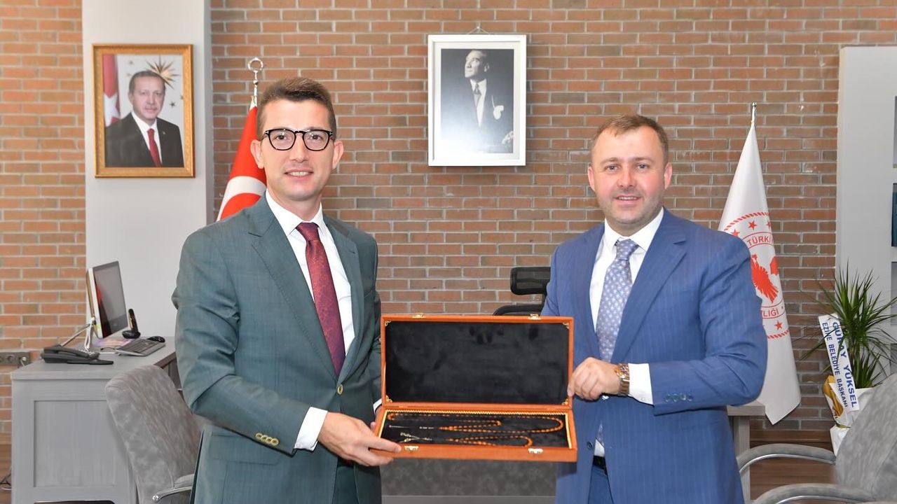Ezine Belediye Başkanı Güray Yüksel, ilçeye yeni atanan Kaymakam Yusuf Kaptanoğlu’na hayırlı olsun ziyaretinde bulunarak, görevinde başarılar diledi.