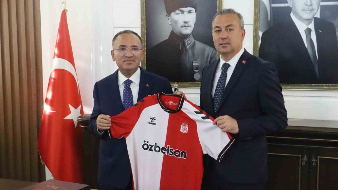 Sivas Belediye Başkanı Adem Uzun, TBMM Başkanvekili Bekir Bozdağ’a Sivasspor forması hediye etti, Bozdağ ise yiğidoların yeniden Süper Lig’e çıkmasını diledi.