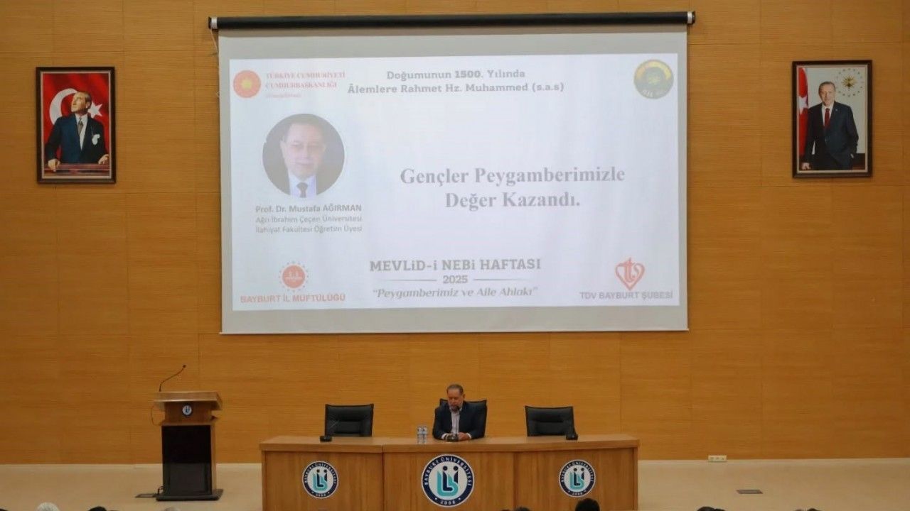 Bayburt İl Müftülüğü, Mevlid-i Nebi Haftası dolayısıyla ’Gençler Peygamberimizle Değer Kazandı’ konulu konferans düzenledi.