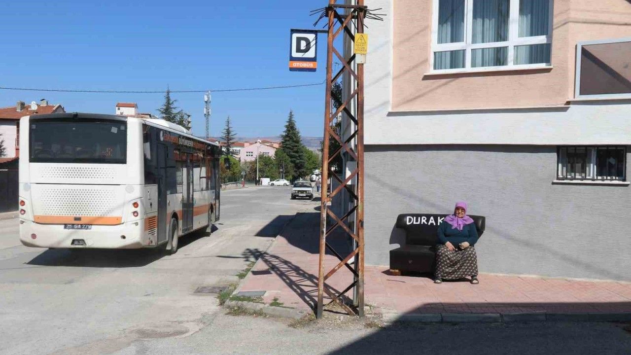 Eskişehir’de belediyenin oturacak yer yapmadığı otobüs duraklarına vatandaş evinden getirdiği koltukları koyarken, çalınmasın diye üzerine "durak" yazıldığı görüldü.
