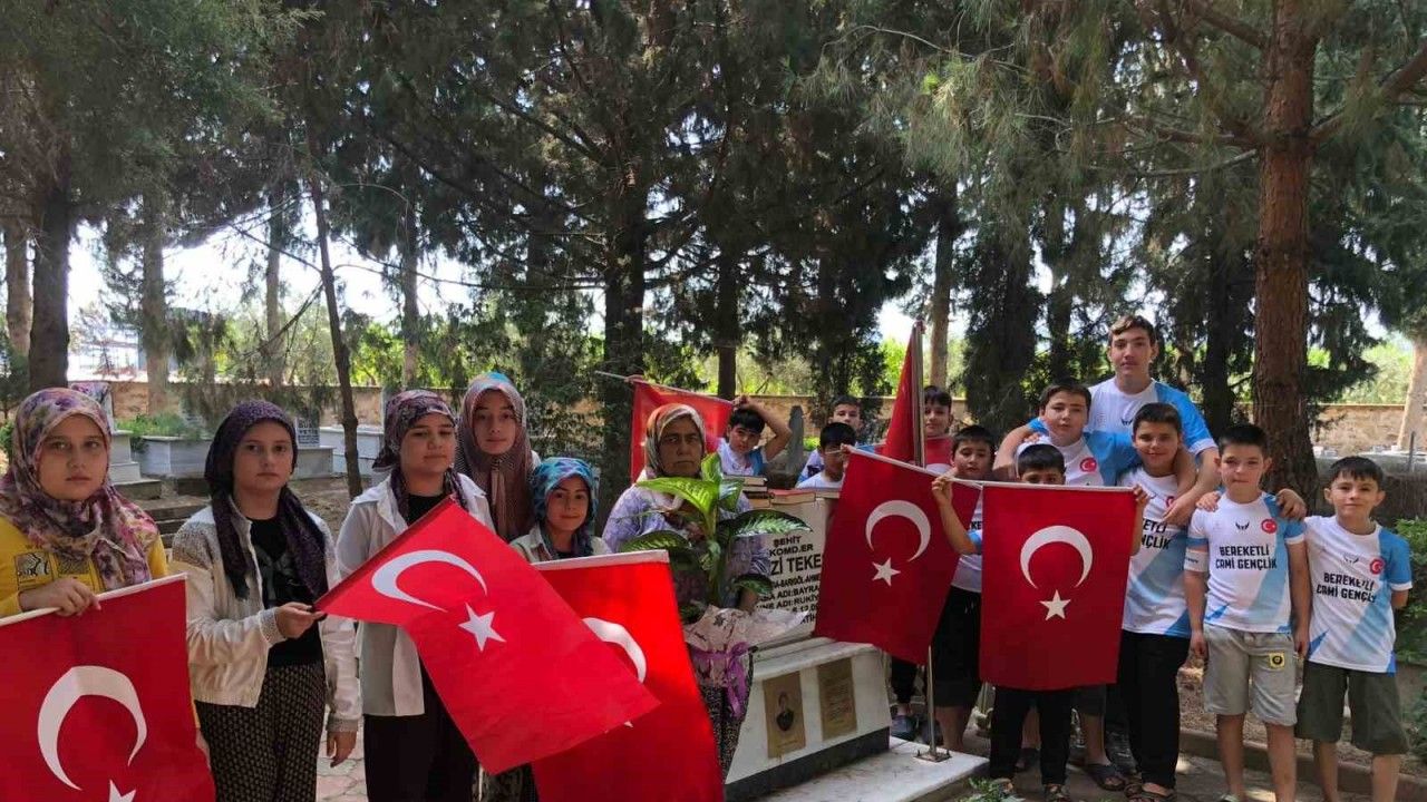 Manisa’nın Sarıgöl ilçesi Bereketli Camisi yaz Kur’an kursu öğrencileri, cami imam hatibi Ali Arslan öncülüğünde Şehit Er Fevzi Tekeş’i mezarı başında dualarla andı, ardından Kıbrıs Gazisi Hüseyin Gürbüzer’in eşi Hatice Gürbüzer’i evinde ziyaret etti.