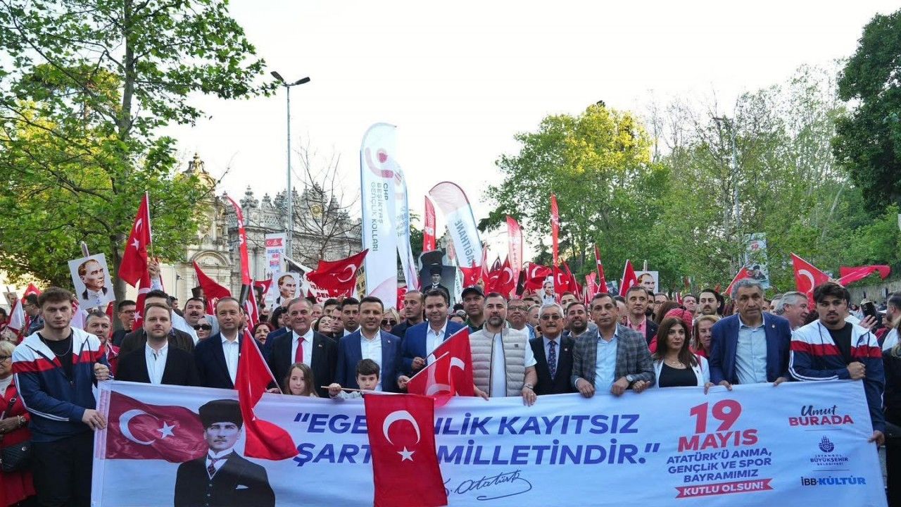Akşam saatlerinde ellerinde Türk bayraklarıyla toplanan binlerce vatandaş Dolmabahçe Sarayı’ndan Beşiktaş’a ‘’19 Mayıs Mustafa Kemal Yürüyüşü’’ gerçekleştirdi. İstanbul Büyükşehir Belediye Başkan Vekili Nuri Aslan, Cumhuriyet Halk Partisi İstanbul İl Başkanı Özgür Çelik, Beşiktaş Belediyesi Başkan Vekili Rasim Şişman, CHP Beşiktaş İlçe Başkanı Alican Şen kortejin en önünde marşlara eşlik ederek vatandaşlarla birlikte Beşiktaş’a yürüdü. Barbaros Meydanı’nda toplanan vatandaşlar hep bir ağızdan İBB Türk Halk Müziği Topluluğu’nun seslendirdiği türkülere eşlik etti. İBB Türk Halk Müziği Topluluğu konserinin ardından İBB Başkan Vekili Nuri Aslan, herkesin 19 Mayıs Atatürk’ü Anma ve Gençlik Spor Bayramı’nı kutladı ve meydanın gençler dolu olmasından dolayı çok mutlu olduğunu dile getirdi. Daha sonra sahne alan müzik grubu Redd sevilen parçalarıyla bayramın coşkusunu daha da artırdı.