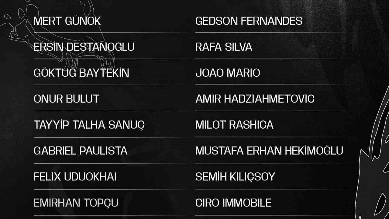 "Mert Günok, Ersin Destanoğlu, Göktuğ Baytekin, Onur Bulut, Tayyip Talha Sanuç, Gabriel Paulista, Felix Uduokhai, Emirhan Topçu, Arthur Masuaku, Alex-Oxlade Chamberlain, Salih Uçan, Gedson Fernandes, Rafa Silva, Joao Mario, Amir Hadziahmetovic, Milot Rashica, Mustafa Erhan Hekimoğlu, Semih Kılıçsoy, Ciro Immobile, Ernest Muçi, Keny Arroyo."