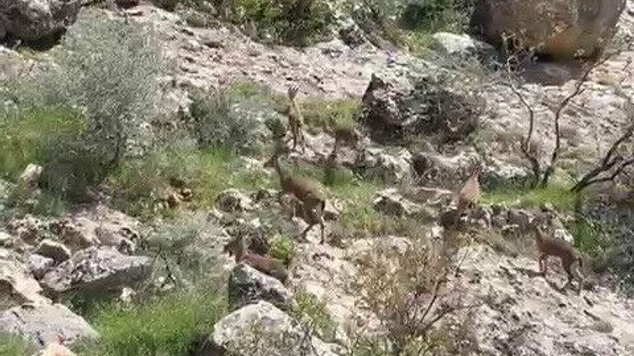 Adıyaman’ın Besni ilçesinde dağ keçileri, sürü halinde vatandaşların kamerasına yansıdı.