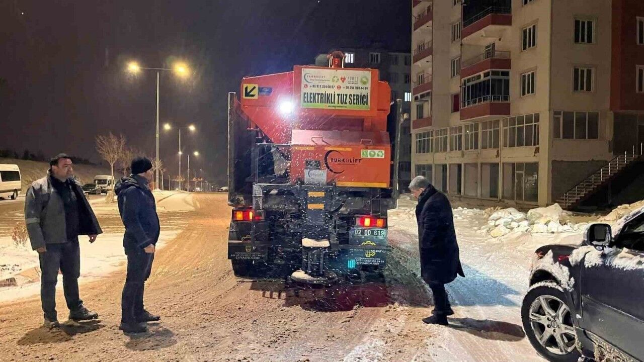 Besni ilçesinde özellikle Yenikent Bölgesi ve 15 Temmuz Mahallesi’nde ekipler, yolların açık kalması için kar küreme ve tuzlama çalışmalarına devam ediyor.