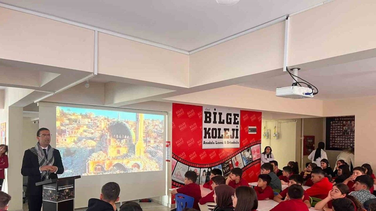 Etkinlik, okul yöneticilerinin yaptığı kapsamlı sunumla başladı. Öğrencilere, Filistin’in tarihsel süreci, bölgede yaşanan insani krizler ve dünya kamuoyunun desteğinin önemi aktarıldı. Sunumlarda Filistin’in yıllar içindeki toprak kayıpları ve günümüzdeki insani dram görseller eşliğinde paylaşıldı. Öğrenciler, dikkatle takip ettikleri bu bilgilendirmeden sonra Filistin halkına destek olmanın insani bir sorumluluk olduğunu dile getirdi.