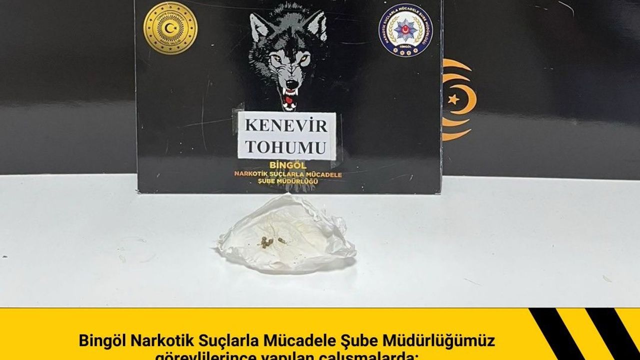 Bingöl Emniyet Müdürlüğü Asayiş ve Narkotik Şube Müdürlüğü ekiplerince uygulama gerçekleştirildi. Uygulamalarda 2 adet bıçak ile 0.57 gram Hint keneviri tohumu ele geçirildi. 2 şahıs hakkında adli işlemlere başlandı.