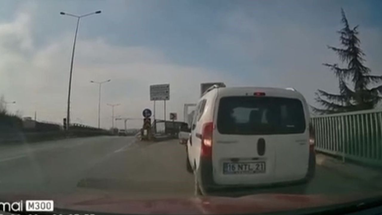 Bursa’da hafif ticari araç, yolu kaçırınca arkasına bakmadan geri manevra yaptı