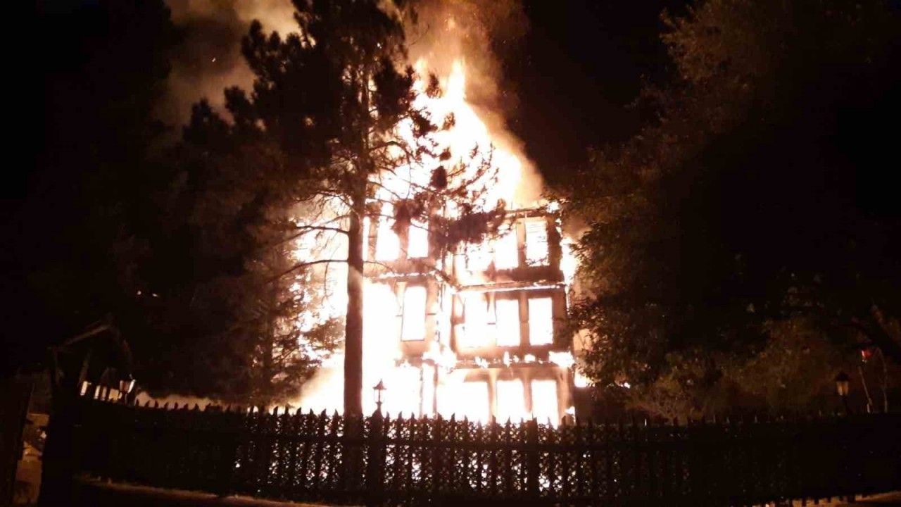 Bolu’nun Mudurnu ilçesinde 1850’li yıllarda inşa edilen Keyvanlar Konağı, sabaha karşı çıkan yangında alev alev yanarak küle döndü. Yangından dolayı evi zarar gören emekli öğretmen, "Bu yangının sebebi vakıf, isterse beni idam etsinler" diyerek tepki gösterdi.