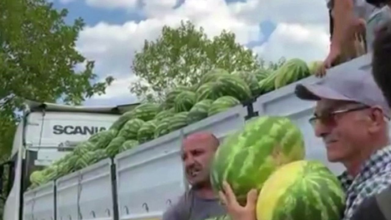 Sakarya’nın Hendek ilçesinde tarım şirketi tarafından, vatandaşlara bir tır dolusu karpuz ücretsiz şekilde dağıtıldı.