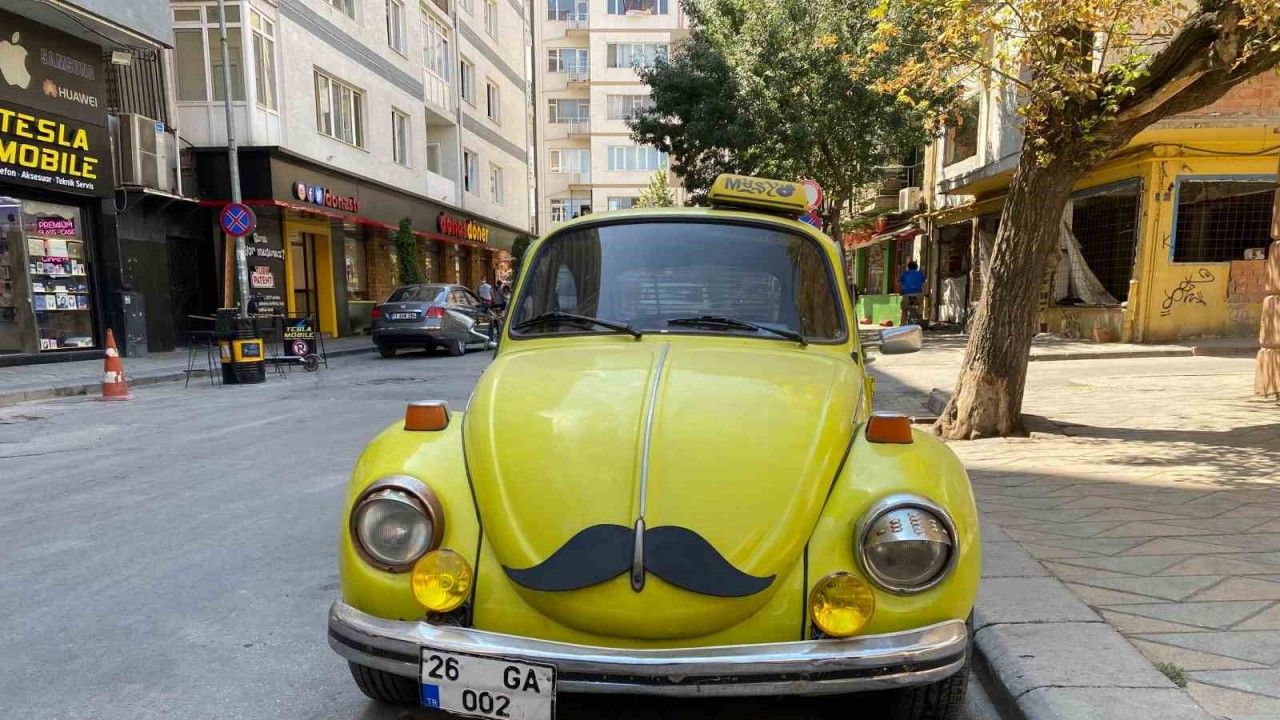 Eskişehir’de, halk arasında ’Vosvos’ olarak tanınan araca takılan bıyık vatandaşların dikkatini çekiyor.