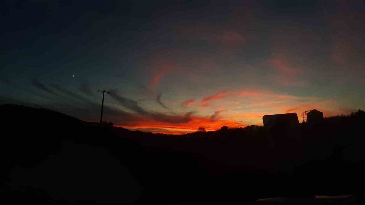 Sonbaharda uzun süredir güneşli hava görülmeyen Bolu’da bugün güneş yüzünü gösterdi. Günün sonunda Mudurnu ilçesinde ortaya çıkan gün batımı manzarası ise görenleri mest etti. Dağların arkasından batarken turuncu ve kırmızı tonlara bürünen güneş, adeta görsel bir şölen sundu. Güneşin batış anı fotoğraf karelerine yansıdı.