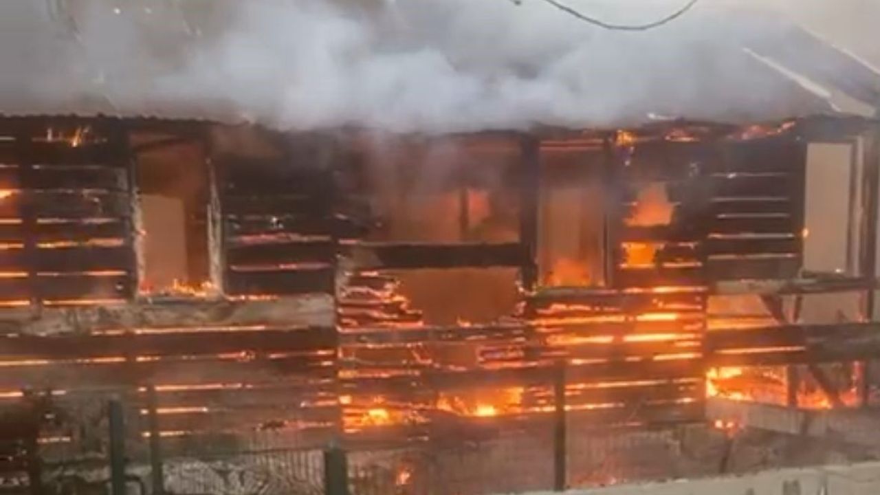 Bolu’da bitişik halde bulunan 2 baraka alev alev yandı.