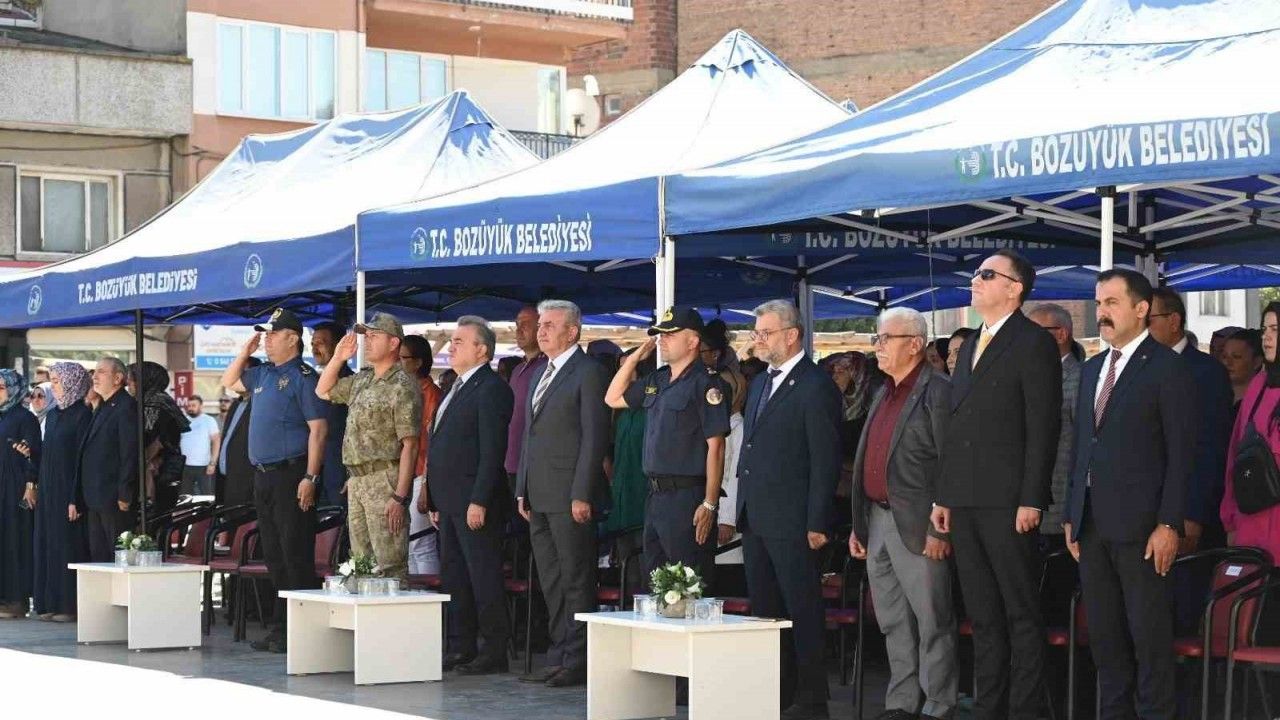 Törende ilk olarak Milli Eğitim Müdürlüğünce Atatürk Anıtı’na çelenk sunumu gerçekleştirilerek, 1 dakikalık saygı duruşunda bulunuldu ve hep bir ağızdan İstiklal Marşı okundu. Törende konuşan Milli Eğitim Müdürü Servet Çetinkaya, 2025-2026 eğitim öğretim yılının hayırlı olmasını temenni ederek "Bozüyük’ün dört bir yanına yayılan heyecan, coşku ve umutla bin 415 öğrencimiz, bin 250 öğretmen ve okul çalışanımızla büyük bir aile olarak, yeni eğitim-öğretim yılına merhaba diyoruz. Bozüyük eğitim ailesi olarak her geçen gün daha da güçlenen birlik ve beraberliğimizin, milli ve manevi değerlerimizin aydınlığında bilgiye, öğrenmeye duyduğumuz derin iştiyakla ve asil milletimizin evlatlarına olan sarsılmaz inancımızla yepyeni bir eğitim-öğretim yılını karşılamanın gurur ve mutluluğunu yaşıyoruz" dedi.