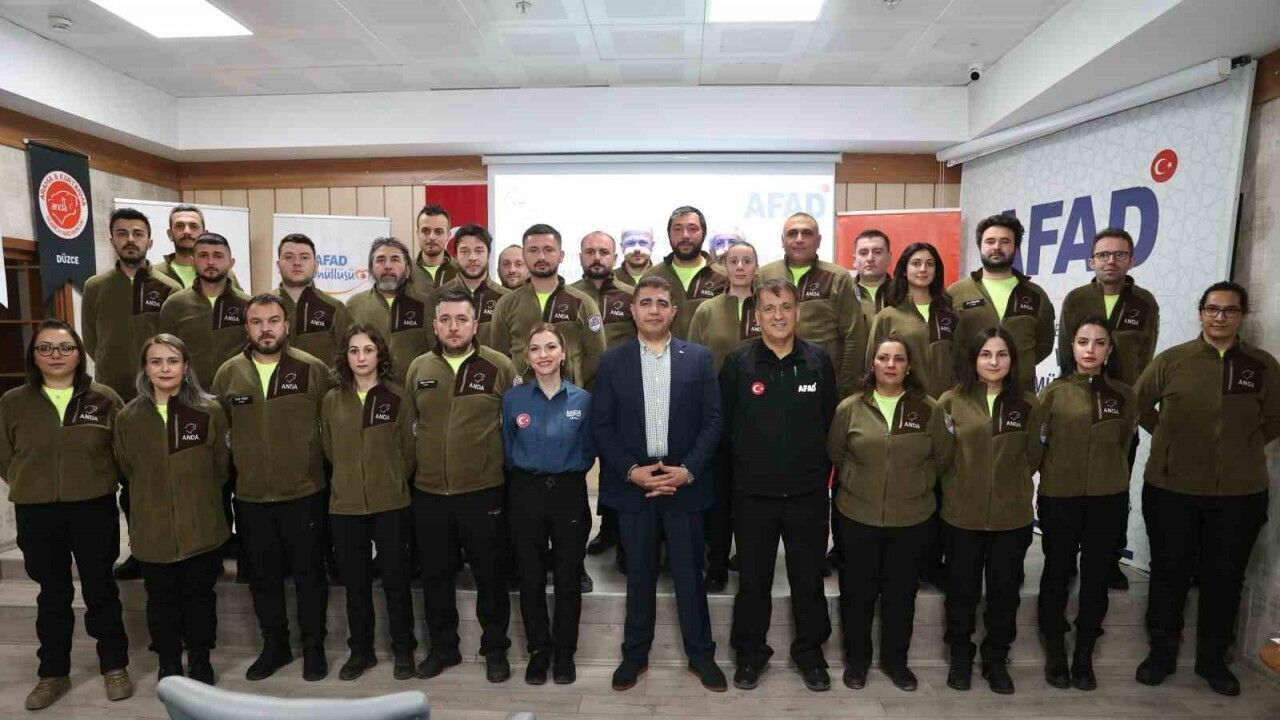 Düzce Arama-Kurtarma ve İnsani Yardım alanında çalışma yürüten STK ve Toplulukların başkanlarının da katıldığı bröve töreninde konuşan Vali Selçuk Aslan, afetlere hazırlık ve müdahale konularında gönüllü çalışmaların önemine dikkat çekerek, dernek üyelerine özverili çalışmaları için teşekkür etti.